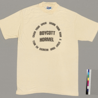 Browse T-shirts (4 total) Browse All Browse by Tag Search Items Browse Map Refine search Movement Select...labor movement Origin Date Remove filter...1986 Decade Select...1980s Origin Location Select...Austin, MinnesotaLondon, EnglandSt. Louis, Missouri Color Select...BlueWhiteYellow BOYCOTT HORMEL: Cram your spam, Damn your ham, and Stuff your weiners as well Tags: labor movement P-9 Victory Wil be Ours The Struggle Continues UAW 325 Tags: labor movement P-9 Proud, Austin Minn Tags: labor movement Wapping Offical Picket Tags: labor movement Output Formats atom, dcmes-xml, json, omeka-xml, rss2