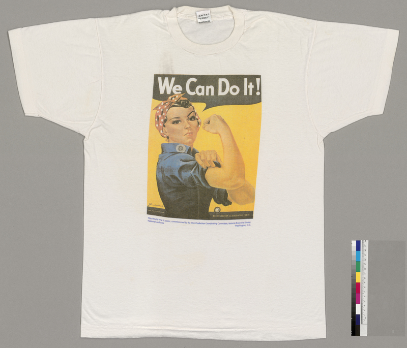 WE CAN DO IT: National Archives Cause WE CAN DO IT: National Archives Movement women and gender equity Decade 2000s Origin Location Washington, DC Color White Size Large Other Notes National Archives Rosie the Riveter shirt. Tags women and gender equity Output Formats atom dcmes-xml json omeka-xml Geolocation ← Previous Item